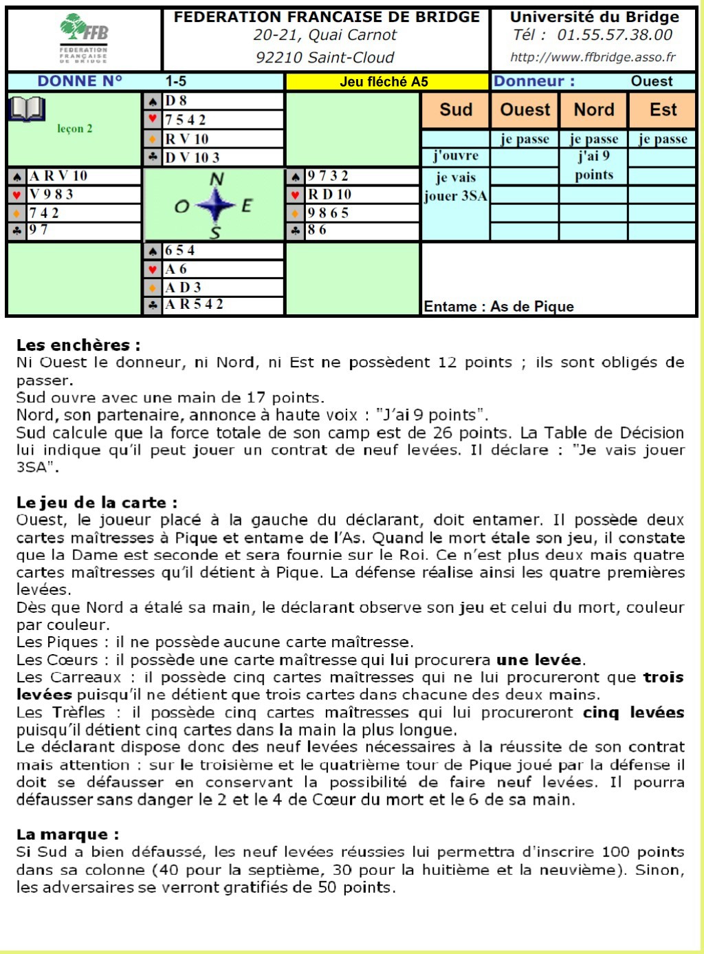Support de cours : Les cartes maitresses du déclarant.