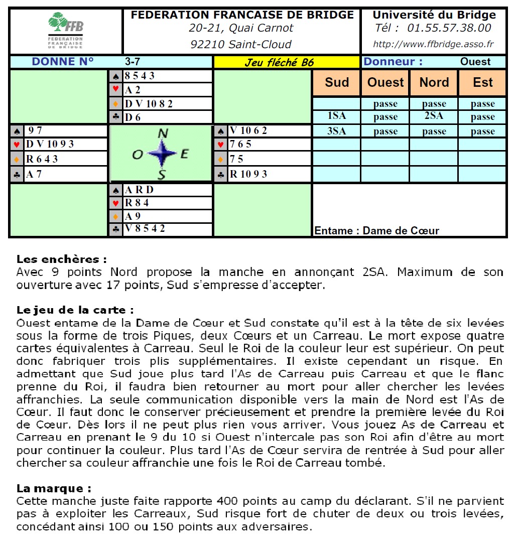 est de 3SA (15 + 10 = 25) ; la manche est certaine, il devra donc la déclarer.