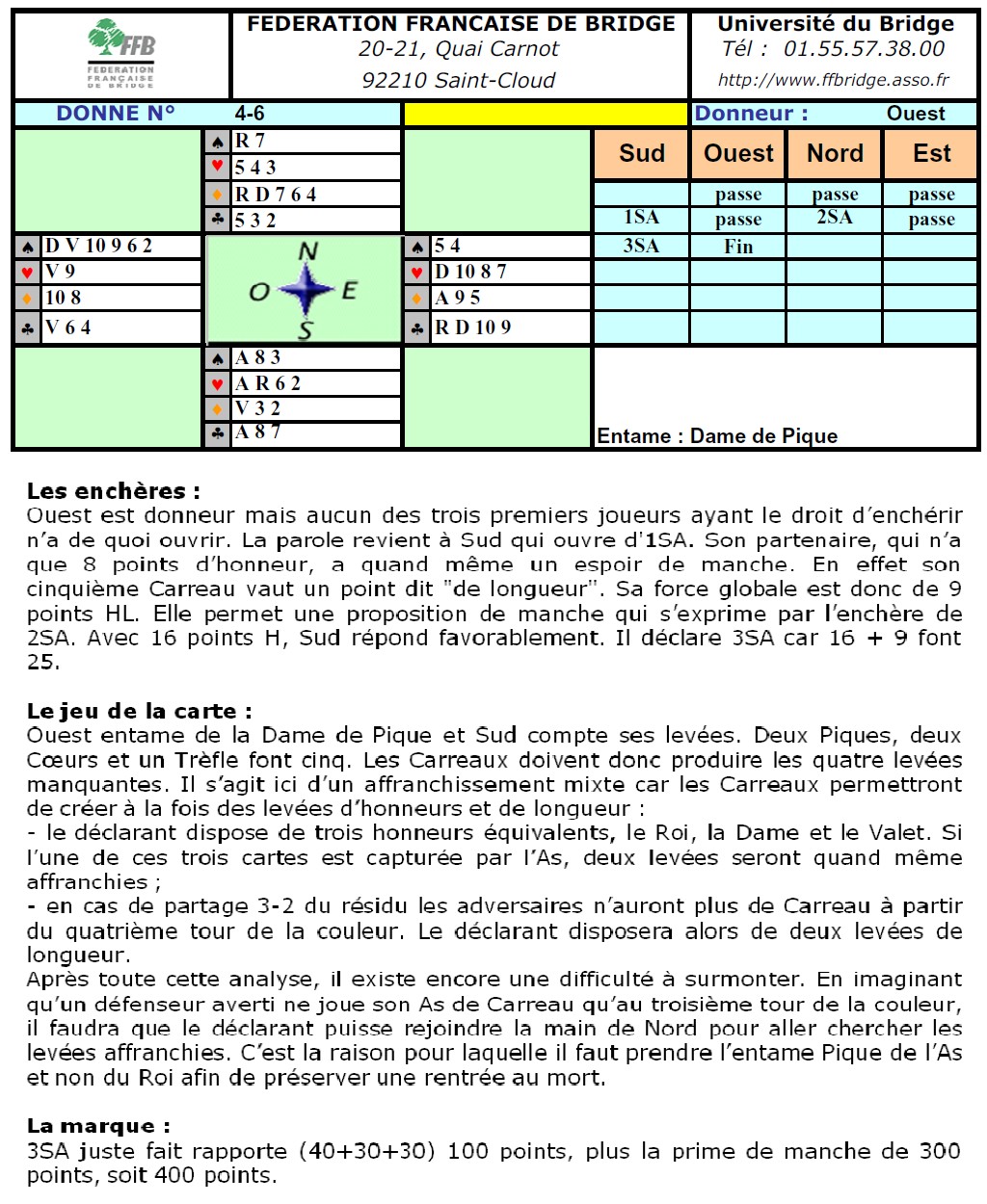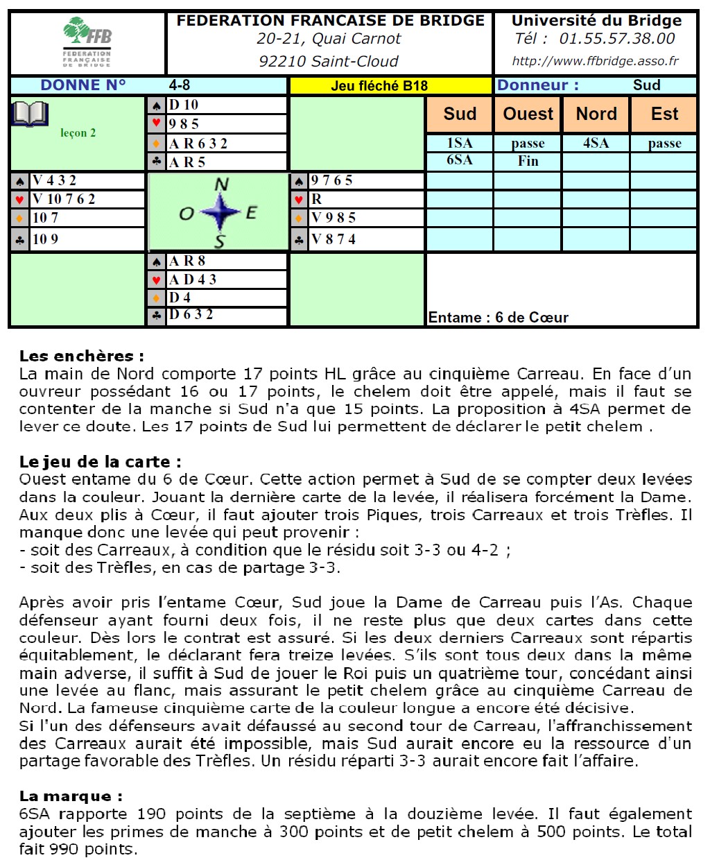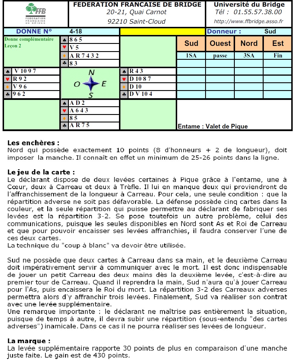 Observons la donne qui suit. Sud a