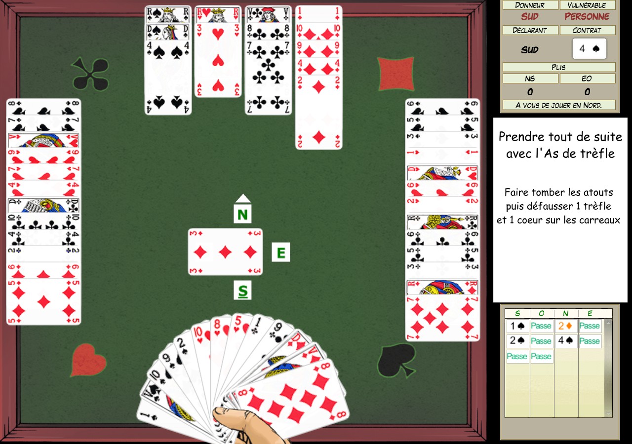 La donne de la semaine 14 Cliquez ici pour voir la solution Animation de la donne Voir les anciennes donnes Accueil Bridge Club de Charbonnières : Gilles LEGAT - Président Tél. 04 78 33 40 41 E-mail : bridgeclubcharbo@free.fr - http://bridgeclubcharbonnieres.fr/